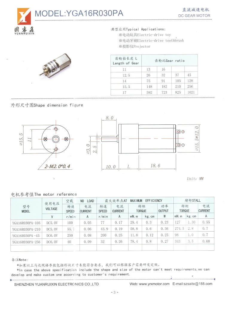 微型减速电机YGA16R030PA